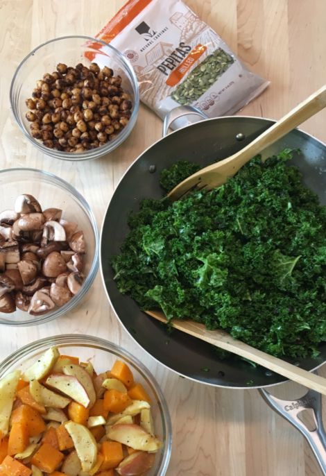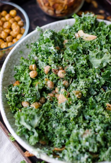 Kale Salad with Crispy Chickpeas and Apples